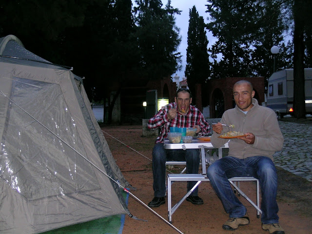 Arrancamos para Serpa na 6ª feira ao fim do dia eu e o Francisco. Após as fortes chuvadas de 5ª e 6ª feira só esperavamos poder montar a tenda sem que estivesse a chover, senão seria bastante desagradável. Felizmente não choveu com intensidade e até deu para jantar ao ar livre.